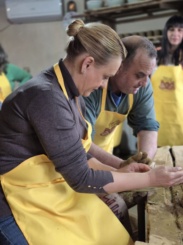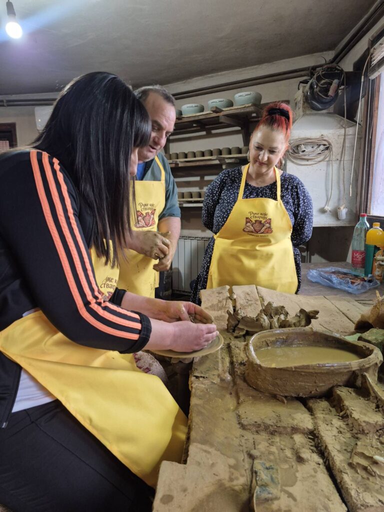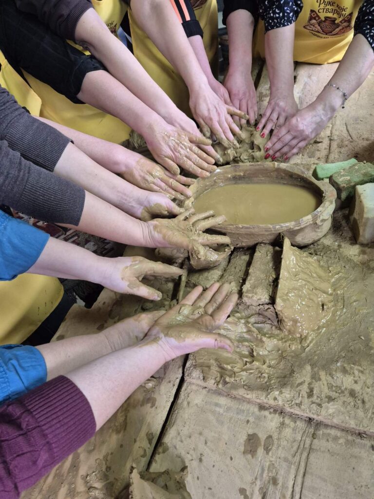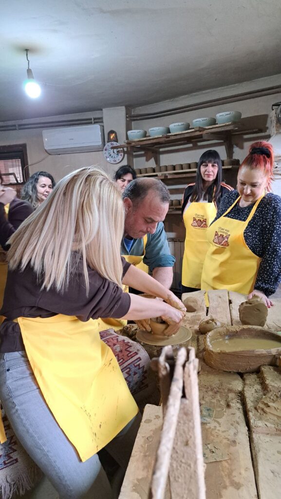 Učesnice pohađaju radionice za izradu tradicionalne pirotske grnčarije – veštine koja se prenosi generacijama i čuva duh našeg kraja, koje vodi poznati pirotski grnčar Dragan Mančić. Oblikovanje gline ima poseban terapijski efekat – smiruje misli, podstiče fokus i kroz kreativni proces pomaže u oslobađanju od stresa. Pokreti ruku, tekstura materijala i ritam rada stvaraju osećaj unutrašnjeg mira i zadovoljstva.